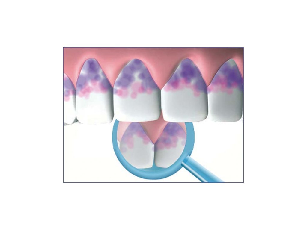 Mira-2-Ton usnadňuje edukaci tím, že z biofilmu dělá názornou pomůcku. Po rychlé aplikaci je okamžitě vidět, kde se pacientovi při každodenním čištění nedaří – typicky v krčkových oblastech, v mezičelistních přechodech, na distálních plochách molárů nebo kolem ortodontických zámků. Díky jasné vizualizaci lze hygienické návyky upravit hned na křesle a předat konkrétní, personalizovaná doporučení.
